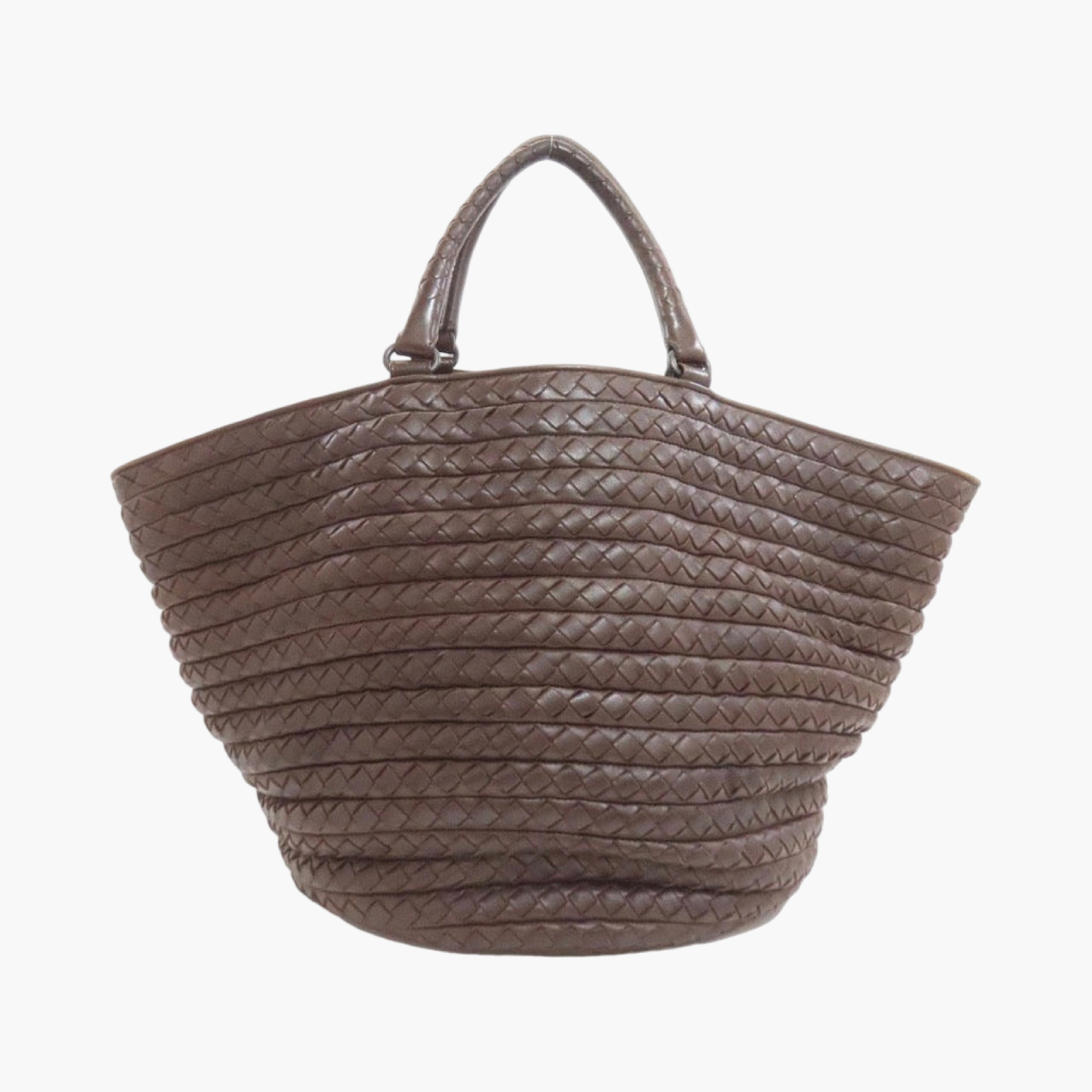 The Bottega Veneta Intrecciato Pleated Basket Tote showcases the house’s iconic woven leather craftsmanship. Crafted from supple calfskin in a rich fondant brown tone, the bag features the signature Intrecciato weave combined with a sculptural pleated silhouette that expands toward the top for generous capacity.