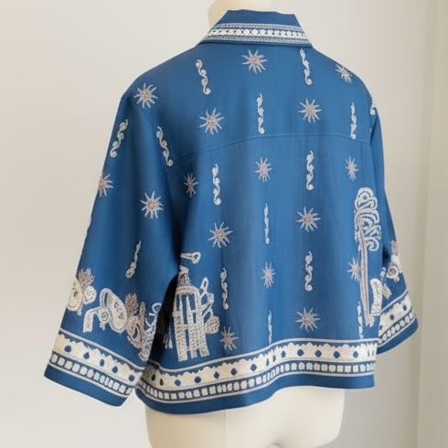 A polished resort-ready co-ord featuring a breezy linen feel and an elevated, graphic border-inspired print. The top is designed with a classic polo collar and relaxed short sleeves for an easy, pulled-together silhouette. The matching shorts sit high on the waist with an adjustable drawstring and practical side pockets—perfect for warm-weather days, travel, and casual city styling.