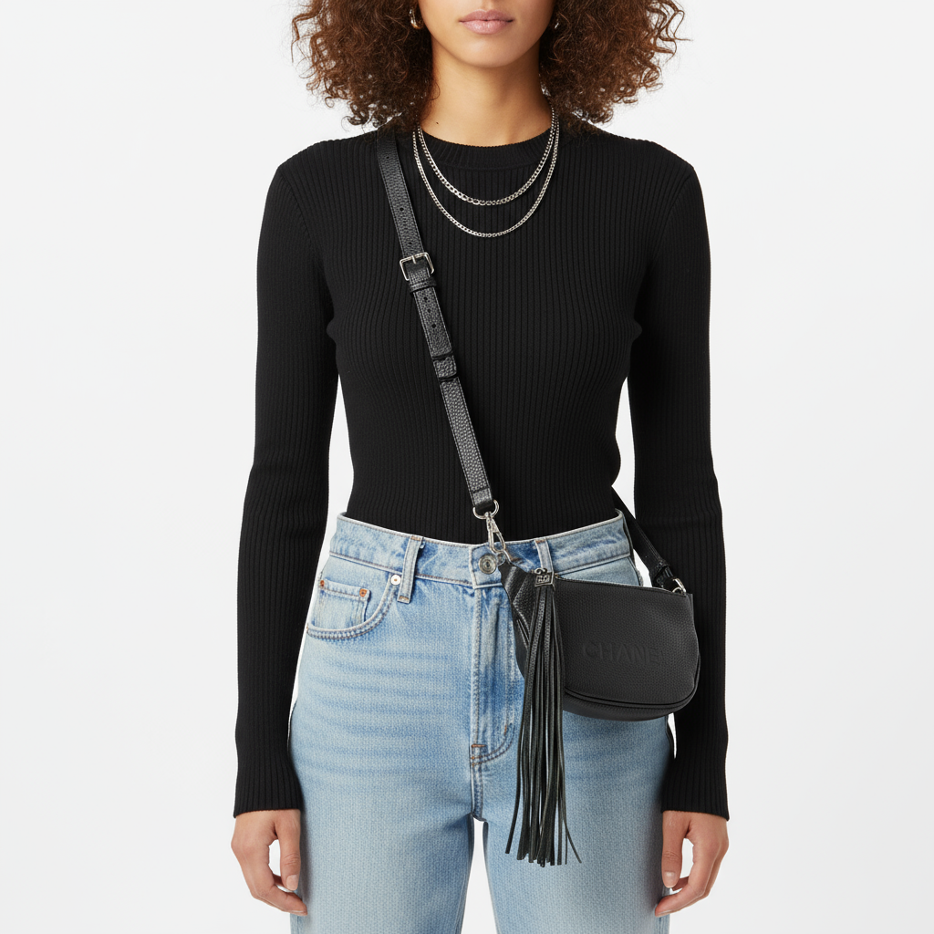 CHANEL – Logo Fringe – Black Calf Leather – Karl Lagerfeld Era, 1990s – 100% Authentic Pre-Owned✨ Good Vintage Condition