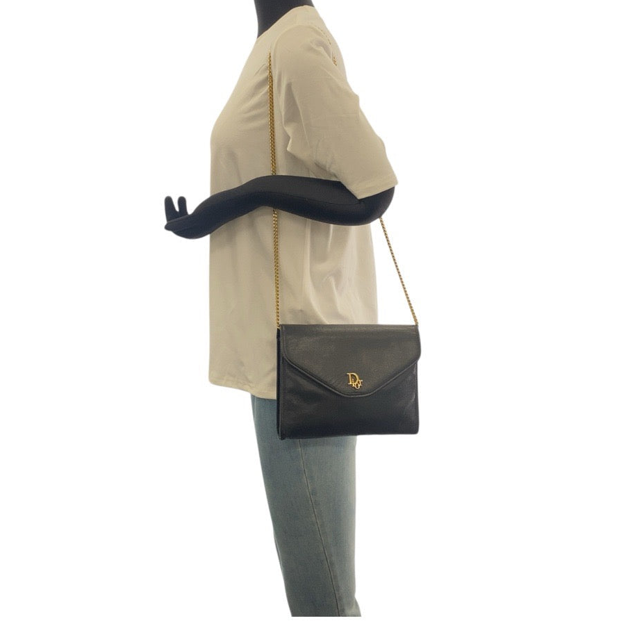 Christian Dior – Vintage Chain Shoulder Clutch – Black Leather with Gold-Tone Chain & “Dior ” Logo – Previously Owned in Vintage Condition