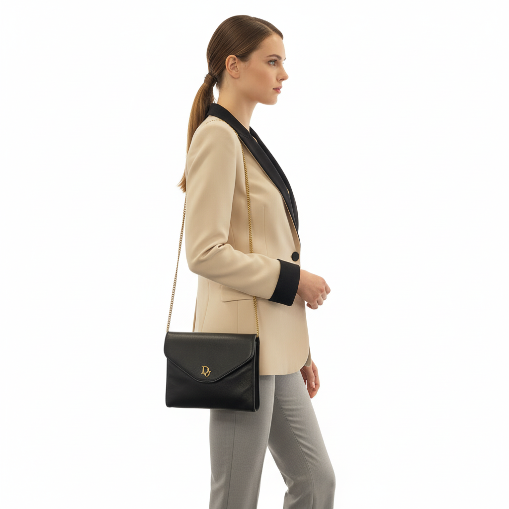 • Elegant vintage Dior envelope silhouette with push-lock flap
