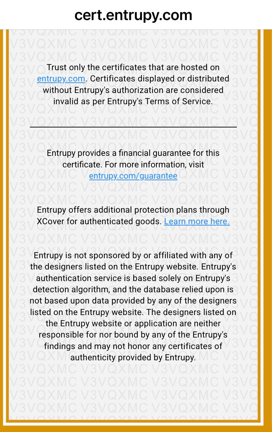 Authenticity: Professionally authenticated by Entrupy. Entrupy Certificate of Authenticity will be provided electronically.